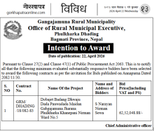Intention to Award (GRM/DHADING/18-82/83)