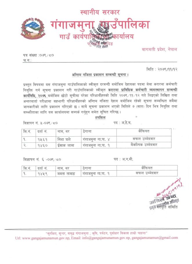 अन्तिम नतिजा सम्बन्धि सूचना (अ.न.मी/अ.हे.ब.)