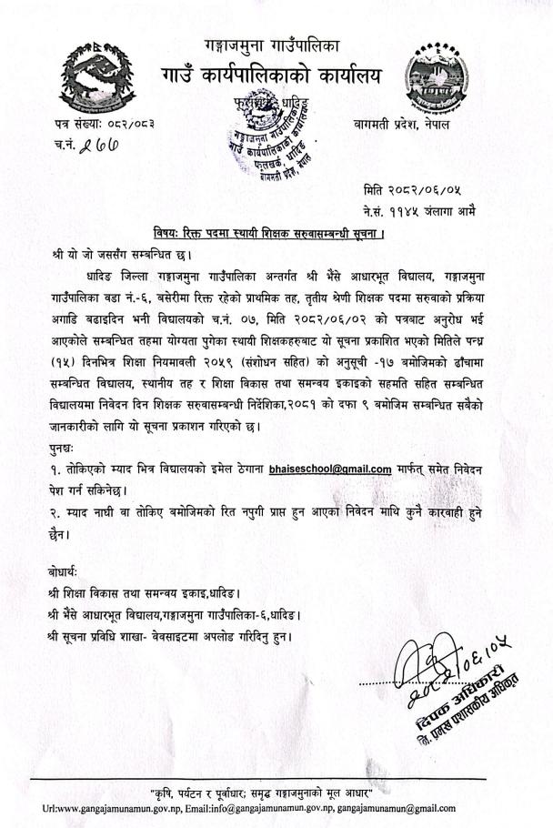 रिक्त पदमा स्थायी शिक्षक सरुवा सम्बन्धमा ।