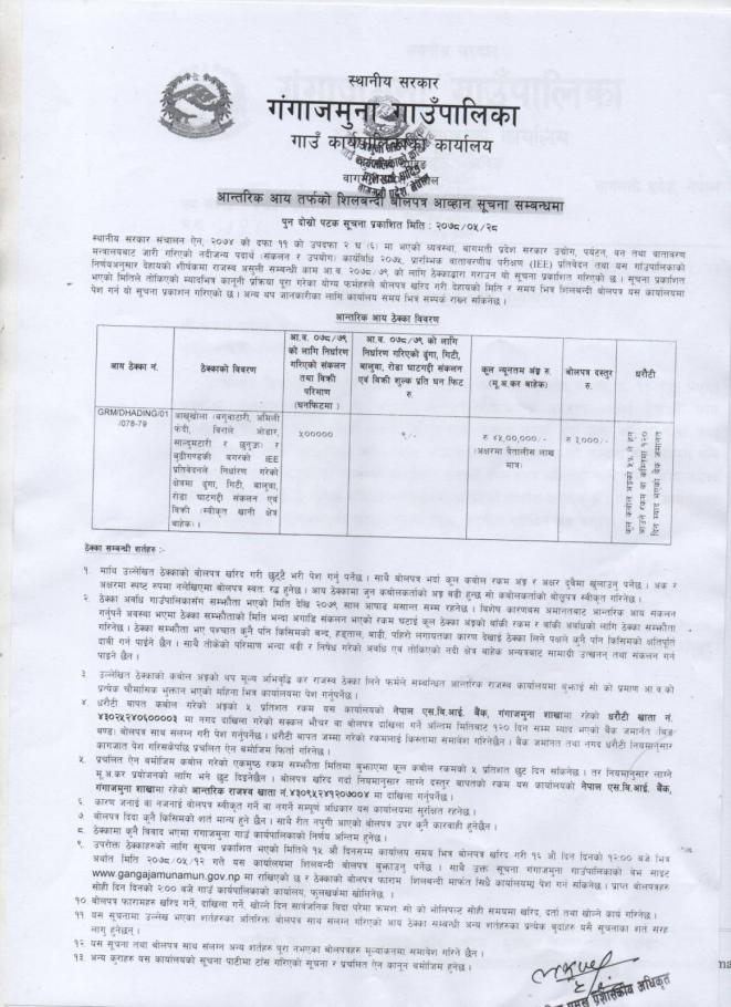आन्तरिक आय तर्फको शिलबन्दि बोलपत्र आह्वान सूचना सम्बन्धमा । दाेस्राे पटक प्रकाशित