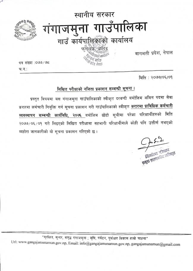लिखित परीक्षाकाे नतिजा प्रकाशन सम्बन्धी सूचना । (अमिन)
