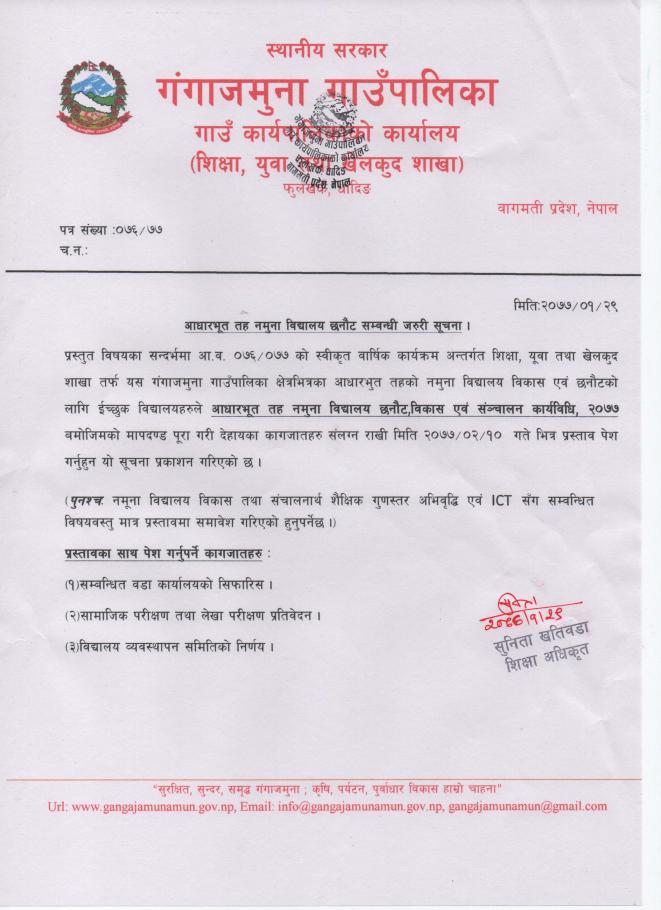 आधारभूत तह नमुना छनौट सम्बन्धी जरुरी सूचना
